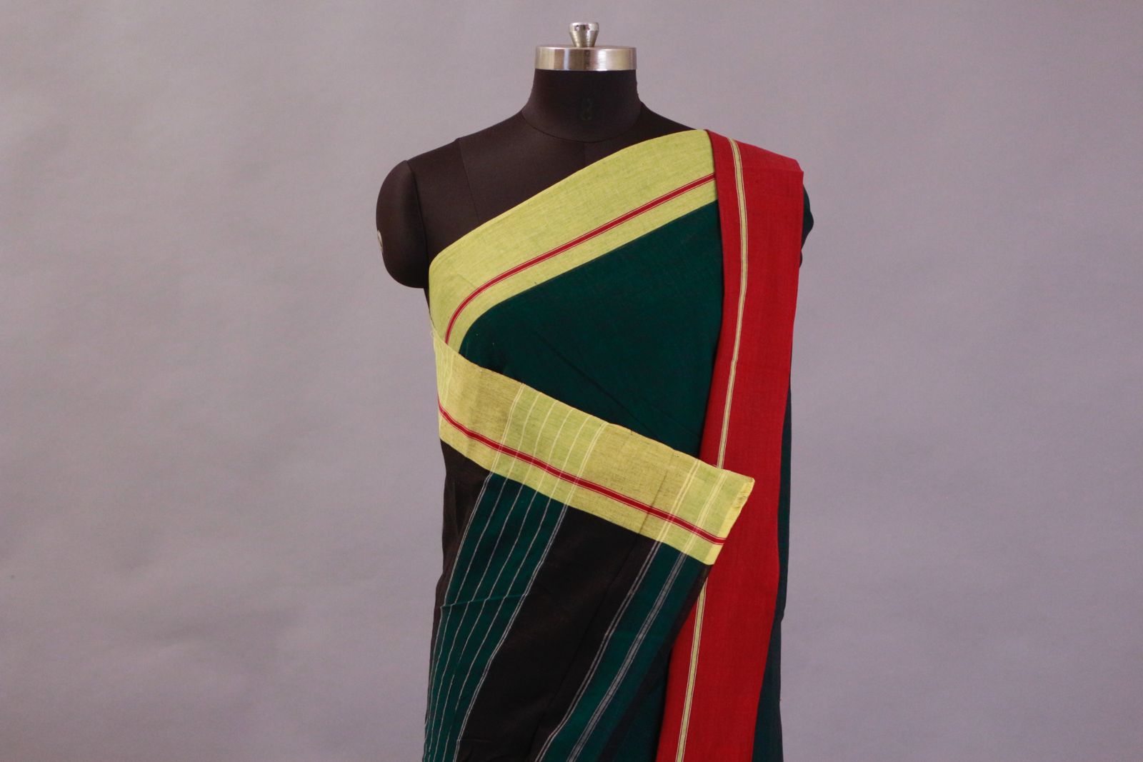 Patteda Anchu Dark Green Red Yellow Plain - Free