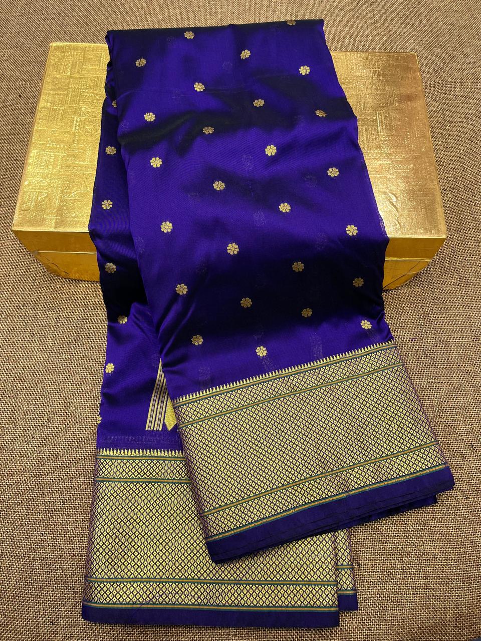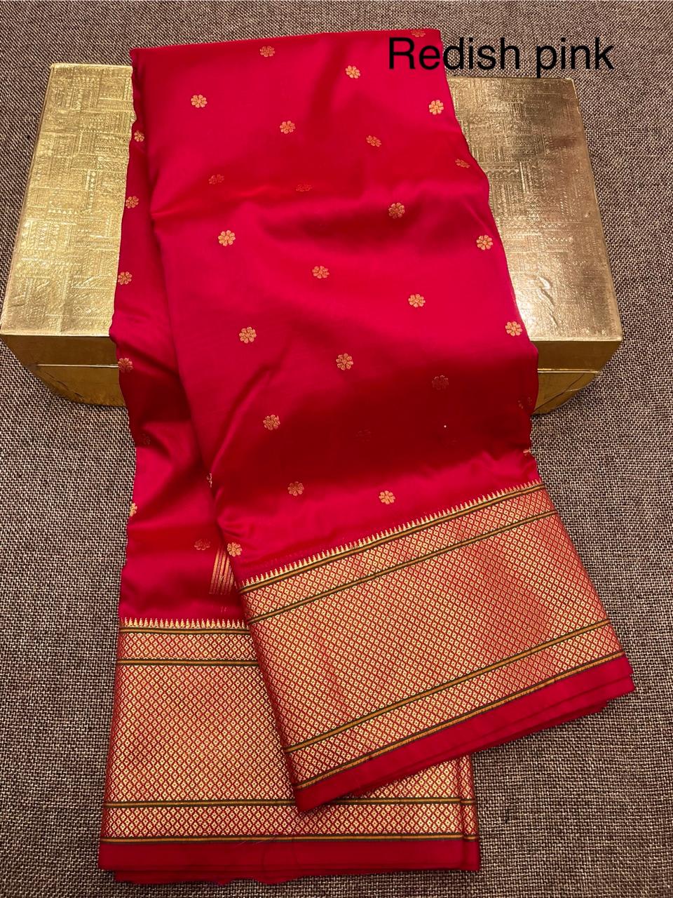 Wine Coloured Kalanjali paithani in semi silk saree with all over butti & Traditonal Peacock pallu with peacock.